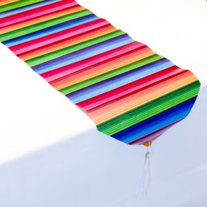Spice up the Fiesta with Something Different! The Fiesta Table Runner is an attractive addition for your fiesta. And since no fiesta is complete until everything is south of the border, this table runner is perfect to spice up any table. 11" wide and 72" long. Made of thin cardstock. Printed on one side. A must have South of the border accessory, great for Fiestas, and Cinco de Mayo celebrations. Part of Tableware > Table Covers