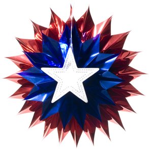 Have A Star Spangled Celebration with Patriotic Party Decorations! The party doesn't start until everything is starred and striped. So don't start your Fourth of July party without the perfect patriotic party decorations. 15" long and wide, fan burst. Blue and red burst with white star cutout in center. Made of metallic foil. Two sided fan. Show your American pride with must have patriotic party decorations like these. USA decorations are perfect for any Fourth of July party or patriotic theme event. Part of Decorations > Hanging Decorations
