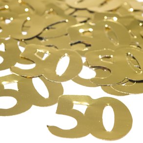 Plan a Perfect Anniversary Party! Let us help you plan the perfect 50th anniversary party. We have all of the party favors and supplies you need to make sure that your anniversary party is a hit! 100 pieces of confetti per package. 2 1/2" long and 2" wide. Gold "50" shaped confetti. One ounce will lightly cover an 84" long x 54" wide tablecover. A must have anniversary party supply! These 50th anniversary party supplies, favors and decorations are perfect for your 50th anniversary party or 50th birthday event. Part of Decorations > Confetti