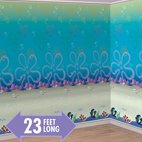 Turn your room into SpongeBob's Bikini Bottom home. Each package of SpongeBob Bikini Bottom Room Rolls includes 2 plastic sheets measuring approximately 48" x 23'. Add SpongeBob Scene Setter Add-ons for that layered look. Attaches and removes easily with your own double-sided tape or Sticky Tack and cuts easily with scissors. Great for indoor or outdoor use.